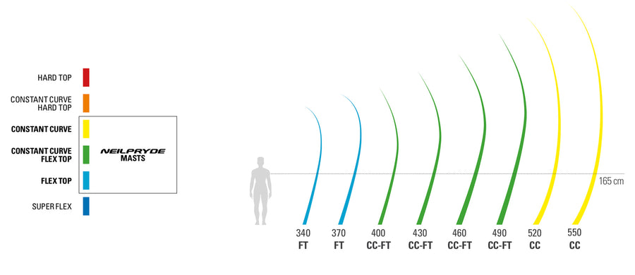 Der Mast mit dem niedrigsten Carbonanteil in unserer Range. Durch die zusätzlichen Fiberglas-Schichten, die im Herstellungsprozess verarbeitet werden, sind diese Masten nahezu unzerstörbar. Die Verwendung von Fiberglas führt zu deutlich dickeren Wandstärken, was die Masten einerseits nahezu immun gegen die Verformung des Mastdurchmessers unter Druck macht, sowie andererseits den Mast sehr unempfindlich gegen Stürze und Schläge macht. Durch den immer noch hohen Carbon Anteil reagieren die Masten blitzschnell und liefern genug Performance, um sie guten Gewissens für alle Segel empfehlen zu können.