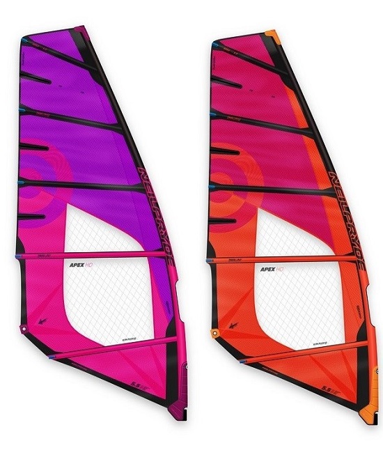 Due to the increased wind-range of the Apex, we have been able to increase the gaps between the sizes to in order to cover a wider range of conditions with less sails in order to allow for easier storage and travel.