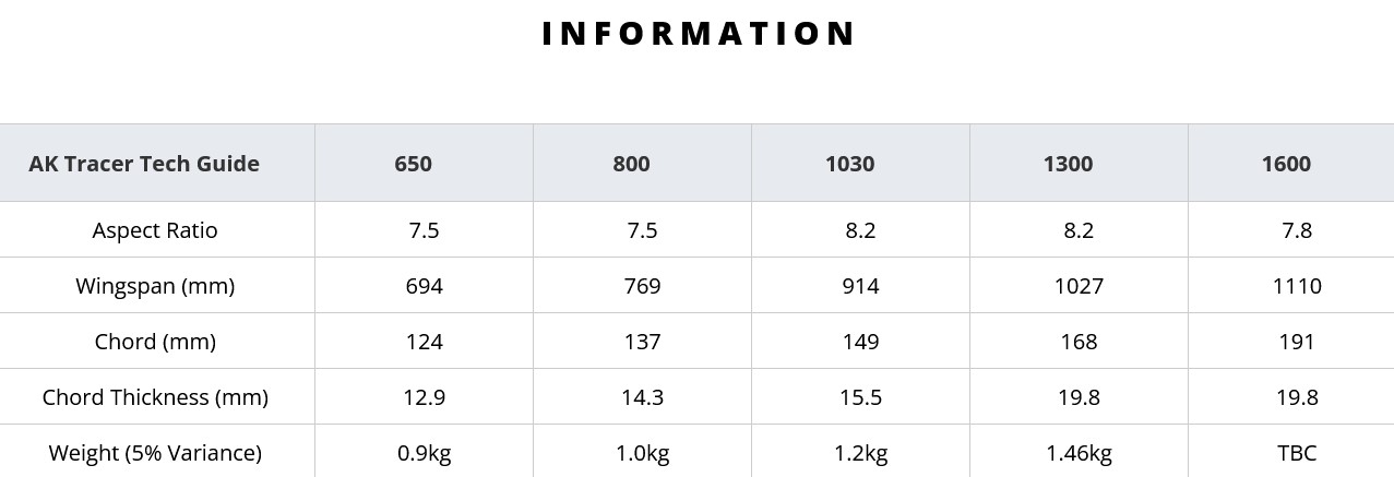 Front Wings available in 650, 800, 1030, 1300 and 1600cm².